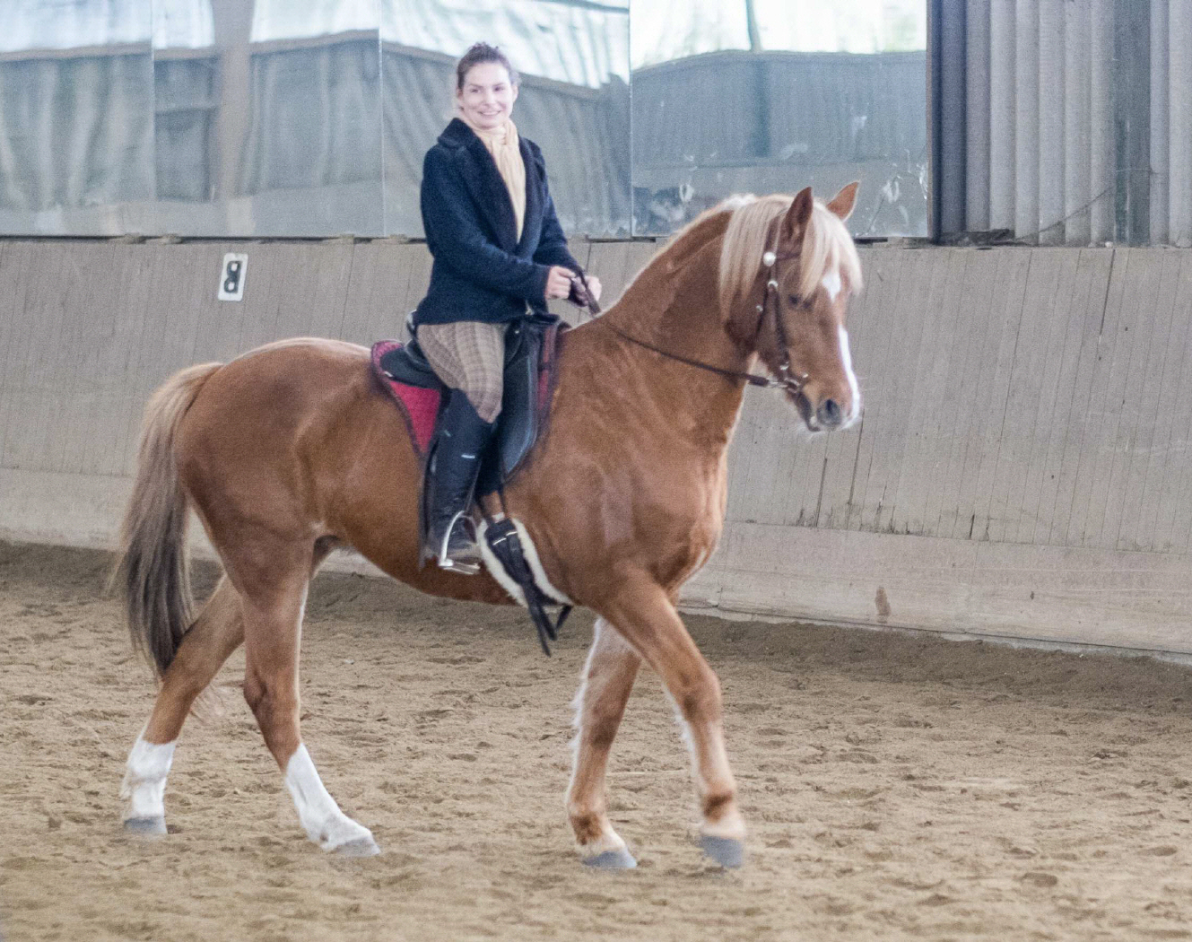 Ich bin sehr froh und dankbar, dass ich bei Nancy Unterricht nehme. Wenn ich mit ihr spreche, hört sie genau zu und nimmt jedes Wort ernst. Sie macht Vorschläge und gibt Anregungen, hat aber auch Verständnis, wenn man diese noch nicht annehmen kann. Alles hat seine Zeit. Respekt gegenüber Mensch und Tier sind ihr sehr wichtig. Niemals gibt es Druck oder Erwartungen. Es ist eher so, als begleitete sie mich bei meiner eigenen Entwicklung, als wäre eigentlich alles schon da, sie müsste es nur sortieren und mir bewusst machen. Oft lachen wir und bewältigen auch mal einen reiterlichen Patzer meinerseits mit Humor. Im Umgang mit meinem Pferd vertraue ich ihr absolut. Sie macht mir mit ihrer lösungsorientierten Art immer wieder klar, dass ich mich selbst respektieren muss und Veränderungen nur von mir selbst kommen können. Nancy hat mich und meinen Fuchs in den letzten Jahren wunderbar begleitet und ich freue mich auf viele weitere, in denen ich noch eine Menge lernen kann.