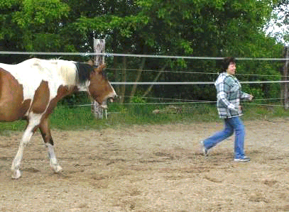 ... Es ist kaum zu beschreiben, was für ein Leben aufbrach, seitdem ich Unterricht in Pferdeumgang, Bodenarbeit und Reiten bei Nancy habe. Es gibt so furchtbar viel zu reparieren von damals. Aber wir haben Zeit. Wir nehmen sie uns einfach. Das ist eine der wichtigsten Erfahrungen dieses Unterrichtes: ich bin langsam, ich muß und will es sein, um über jeden Schritt nachzudenken, selbst über das Lockersein ... Und Nancy kommt mit mit diesem langsamen Tempo. Und wir wissen: eine Chance auf einen gesunden Neuanfang und aber auch einen wirklichen Weg hin zu dem Traum ‚Reiten in Harmonie’ haben wir nur in dieser Langsamkeit, im Neusortieren von Knochen, Gedanken, Muskeln. Und wenn für mich Schrittreiten zum ‚Reiten in Harmonie’ wird, dann ist es gut so. Und es wird weitergehen, dessen bin ich mir sicher. Wohin? Keine Ahnung. Es wird schön werden, weil es jetzt schon schön ist, das weiß ich. ... alles lesen